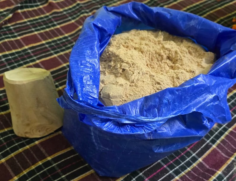 Finely processed sandalwood powder made from high-quality sandalwood logs, ensuring purity, smooth texture, and rich natural aroma.